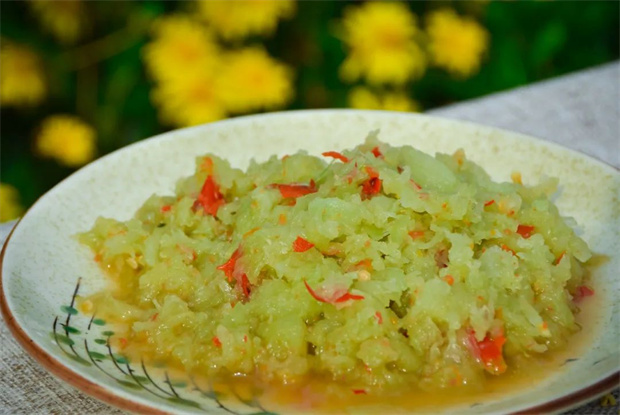 除此之外,“云上美食”餐厅的地道菜品还有:油炸肉。这道菜的做法简单,但储存方式独特,用土罐将腌制好的瘦肉存放,可以放几个月到一年不等,吃的时候捞出来,蒸、炒都可,口感独具特色。