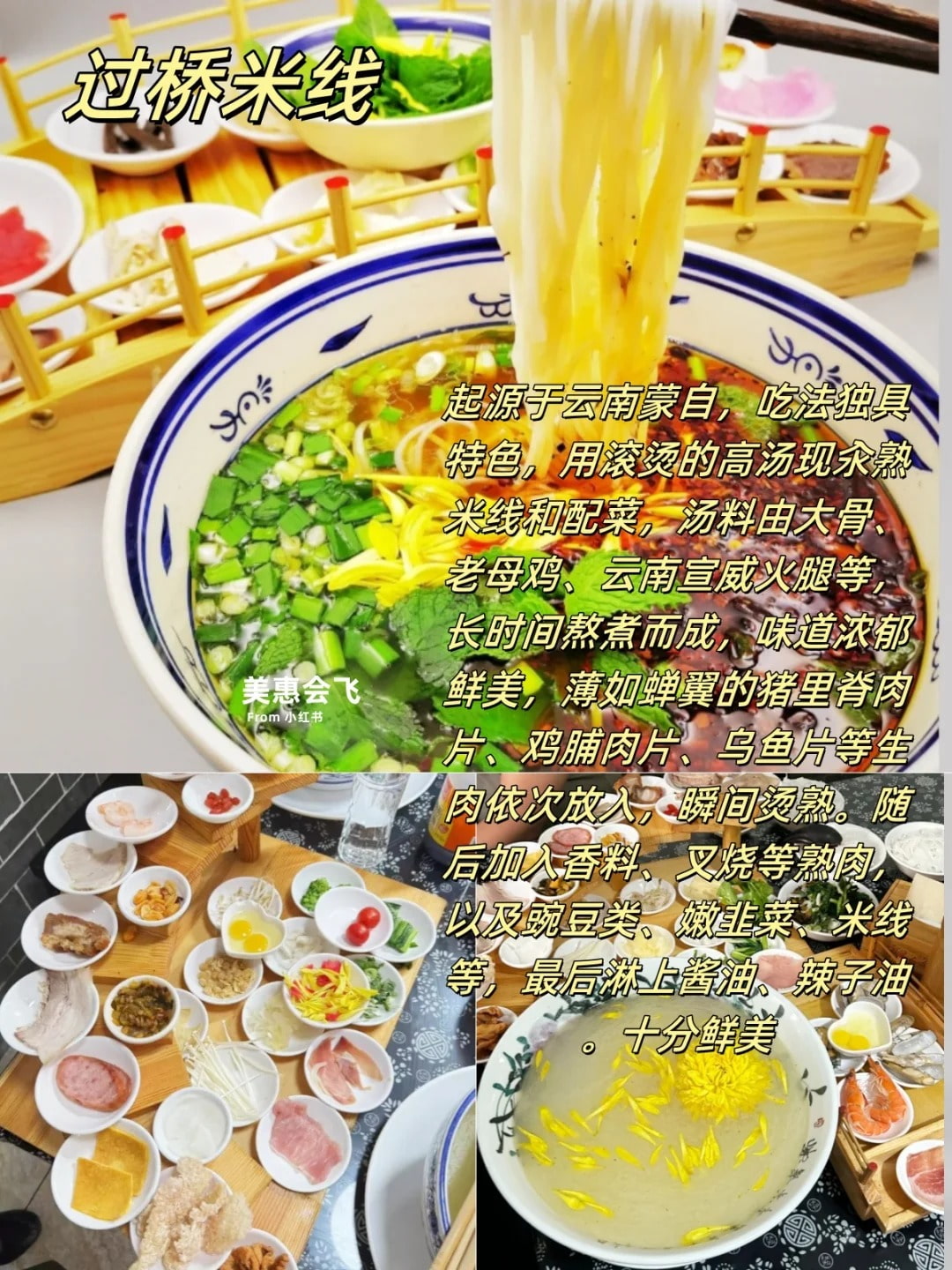 1.过桥米线:2014年,蒙自过桥米线制作技艺被列入第四批国家级非物质文化遗产保护项目名录。汤料由大骨、老母鸡、云南宣威火腿等,长时间熬煮而成,味道浓郁鲜美,营养丰富。