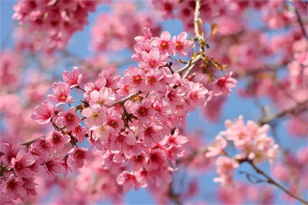 深冬时,还有冬樱花盛放。红河谷的梯田边、山坡上的野樱花、公园里的樱花林,粉色的花朵点亮了冬日的沉闷,微风