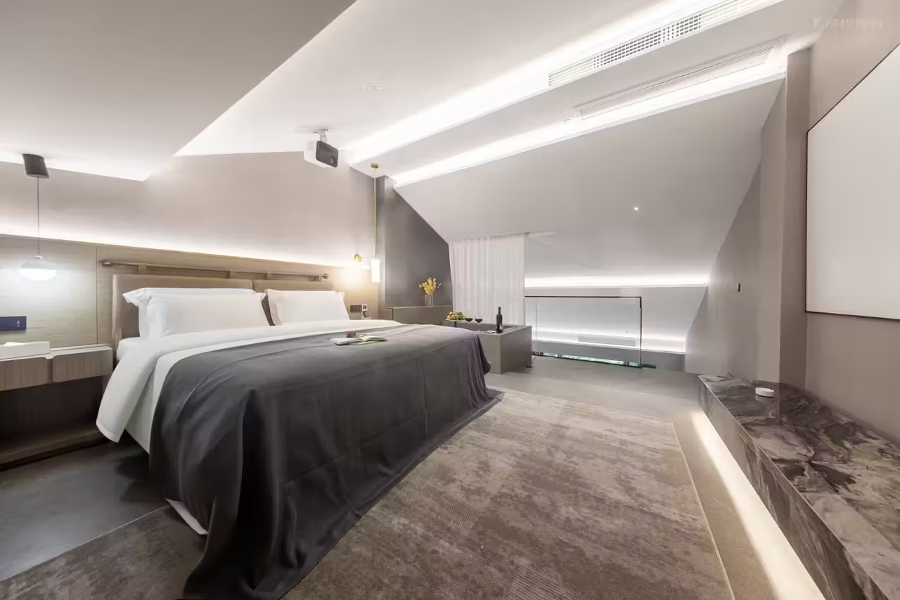 室内设施齐全,含55寸液晶电视、全屋语音智能系统、0压床垫,卫生间实现干湿分离,洗漱用品配备完备。