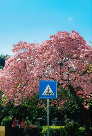 凤凰路与文汇路交叉口的 “网红树” 花开满枝